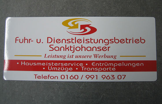Wir bedrucken im Digital- oder Siebdruck kostengünstige Folienaufkleber, Etiketten, Prüfplaketten Siegelplomben und Inventar-Aufkleber. Letztere nach Wunsch auch mit fortlaufender Nummer. Alle Aufkleber können einzeln oder in Serie, in verschiedensten Formen (Wappenform, rund, oval oder eckig) und unterschiedlichsten Folientypen hergestellt werden. Falls Sie Unterstützung bei der Gestaltung brauchen, stehen wir Ihnen gerne zur Verfügung. Größere Aufkleber können wir für Sie fachgerecht verkleben.